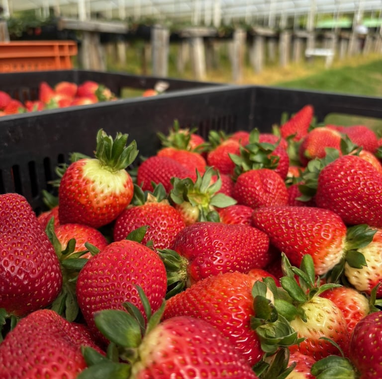 Fresas frescas llegan a tu puerta en menos de 24 horas desde la cosecha.